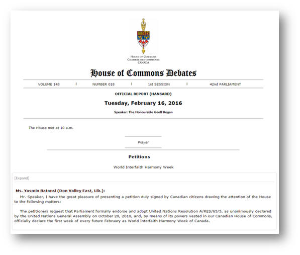 In 2016, Our Petition To Canadian Parliament To Officially Recognize The UN Declaration In Canada Was Officially Read Into Hansard |