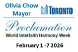For the 14th year in a row The City of Toronto has(TBU) proclaimed February 1 - 7 as World Interfaith Harmony Week ![]() ![]() |