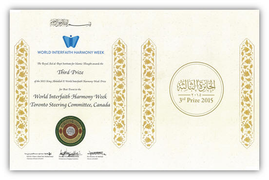 Who Are We, And What Do We Do? Based The Common Word Initiative, World Interfaith Harmony Week was first proposed to the UN General Assembly on September 23, 2010 by H.M. King Abdullah II of Jordan. Just under a month later, on October 20, 2010, it was unanimously adopted. World Interfaith Harmony Week seeks to bring together all people of good will, regardless of faith, to learn about each other and find ways to work together on common agendas. Our Toronto Steering Committee held its inaugural meeting at the offices of the Catholic Diocese of Toronto on October 21 2012, Our first events were organized for World Interfaith Harmony Week 2013 Our third year program was internationally recognized which is a testament to the vibrant interfaith community in the Greater Toronto Area. We are grateful for their continued support and participation. |